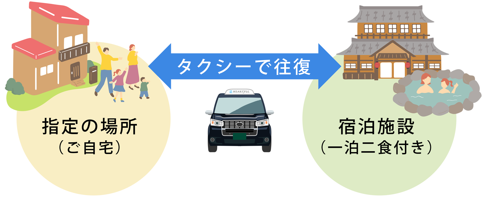 タクシーツアーで 驚きのリーズナブルな価格を実現 自宅から始まる「ドアtoドア」の旅へ 今まで旅行をあきらめていた方も 安心してご利用いただけます